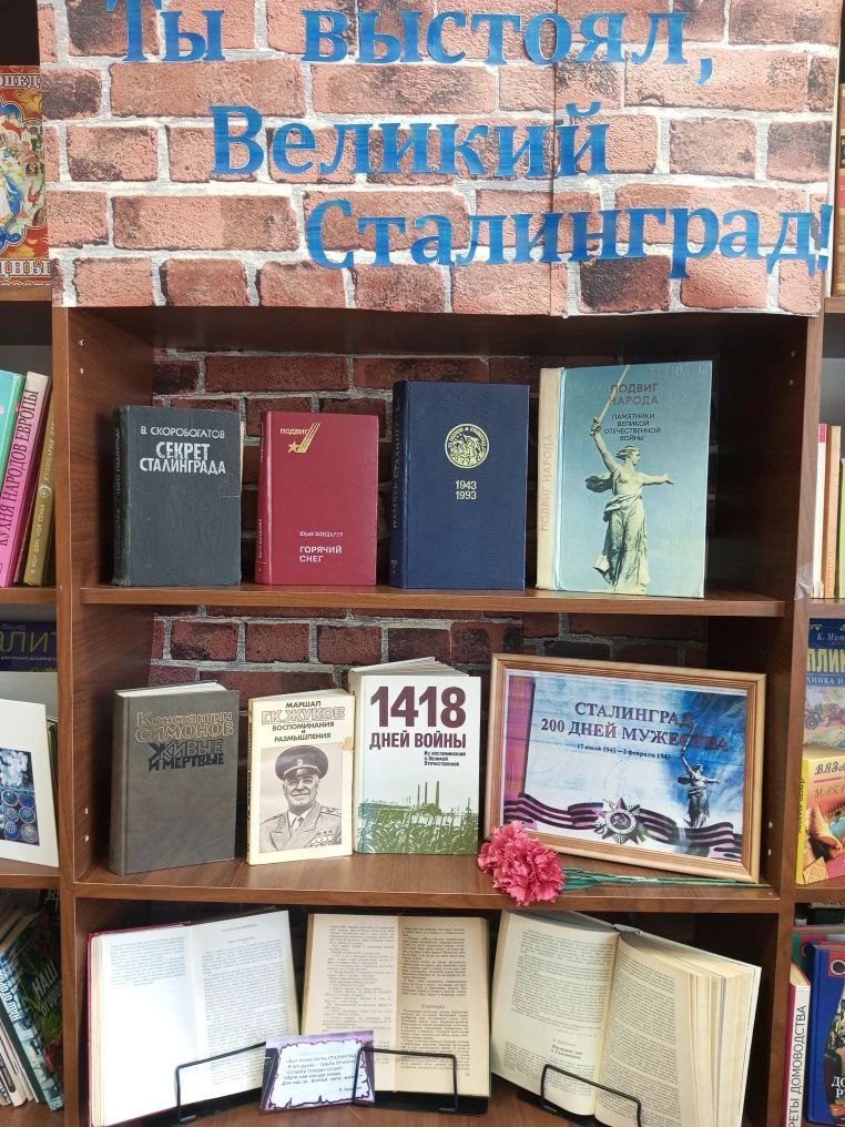 р.п. Таврическое, ул. Пансионатная, 9В библиотеке Таврического дома - интерната в День воинской славы России - День разгрома советскими войсками немецко-фашистских войск в Сталинградской битве открылась тематическая выставка книг «Ты выстоял, Великий Сталинград!». Эта дата - священный день памяти для всех поколений. Сталинградская битва, длившаяся 200 дней и ночей, стала символом невероятного мужества, стойкости и великого подвига нашего народа. За каждым из этих дней – истории героизма солдат и офицеров, рабочих и детей, которые стояли насмерть, защищая родную землю. На выставке представлены документальные хроники, мемуары и художественные произведения о самом масштабном сражении Великой Отечественной войны, которое стало её переломным моментом. Вечная слава героям Сталинграда! Вечная память павшим! Приглашаем всех посетить выставку и почтить память героев. #ТаврическийДомИнтернат #СталинградскаяБитва #ДеньВоинскойСлавы #2февраля #ТыВыстоялВеликийСталинград #Память #ВОВ #НашаИстория #Библиотека #Выставка #Ветераны #ПодвигНарода